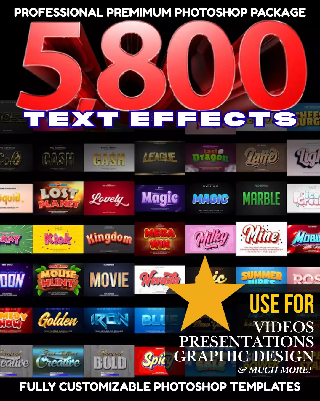 TRANSFORM YOUR DESIGNS INTO PROFESSIONAL MASTERPIECES INSTANTLY! Unleash the FULL CREATIVE POWER of Photoshop with this MASSIVE collection of stunning text effects that will revolutionize your graphic design projects! Whether you’re crafting eye-catching logos, dynamic social media posts, or professional marketing materials, these effects deliver INSTANT SOPHISTICATION and visual impact that separates amateur work from PRO-LEVEL creations! From sleek metallic finishes to explosive neon glows, vintage distressed looks to futuristic chrome effects, this comprehensive arsenal gives you the creative ammunition to dominate any design challenge! GRAB this game-changing collection today and watch your designs command attention and respect!