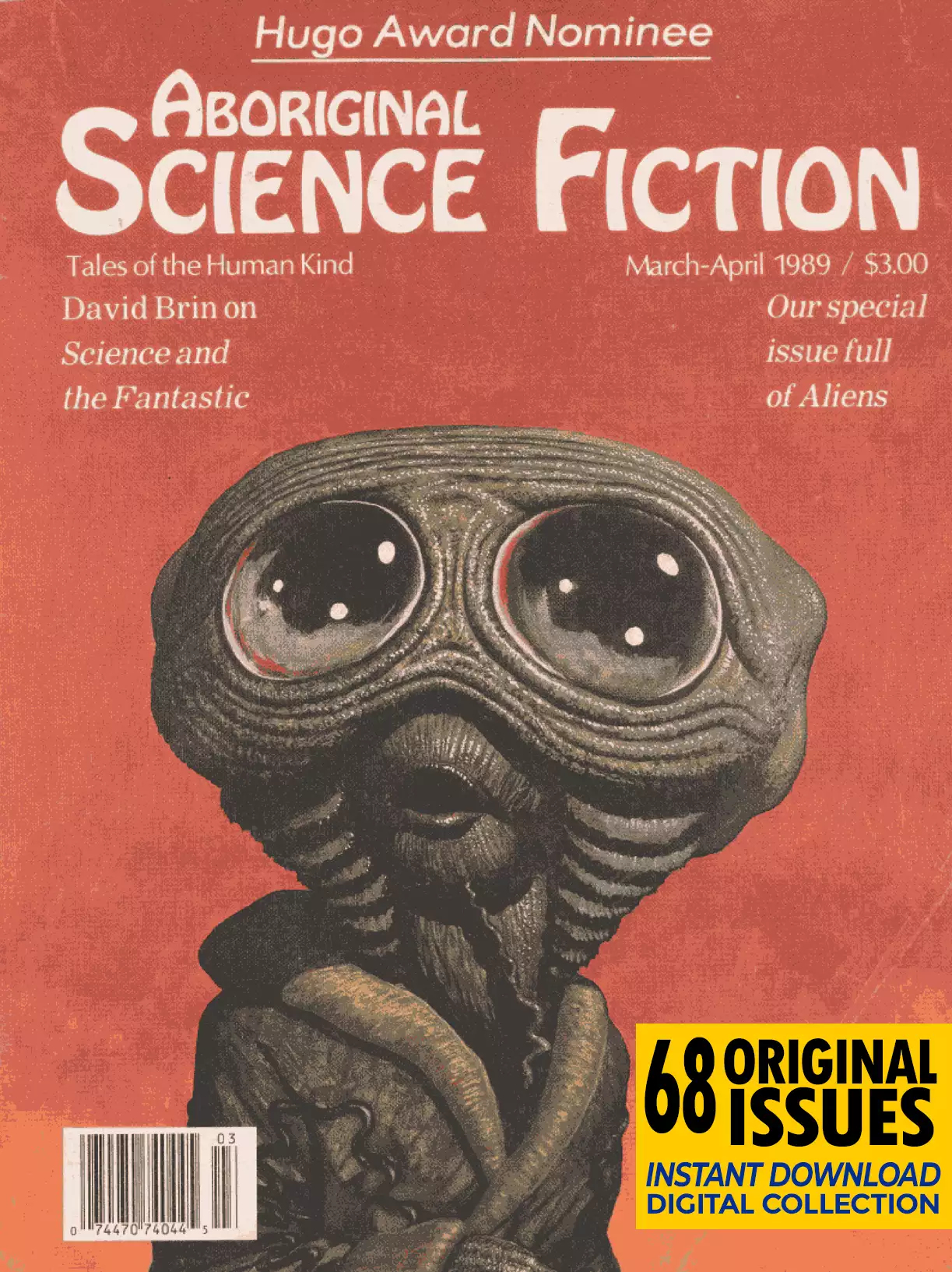 Step into the pages of Aboriginal Science Fiction, the groundbreaking semi-professional sci-fi magazine that carved its own path from 1986 to 2001. Created by visionary editor Charles Ryan, this high-circulation publication championed fresh, innovative voices in science fiction, offering a thrilling alternative to Analog and Asimov’s. With its unique branding—framed as intercepted reports from an alien anthropologist fascinated by Earth’s sci-fi culture—Aboriginal Science Fiction quickly gained a cult following, blending bold storytelling with striking illustrations from artists like filmmaker Larry Blamire. Its influence extended beyond the magazine, spawning a rare and coveted 1988 anthology that showcased some of its finest stories.
