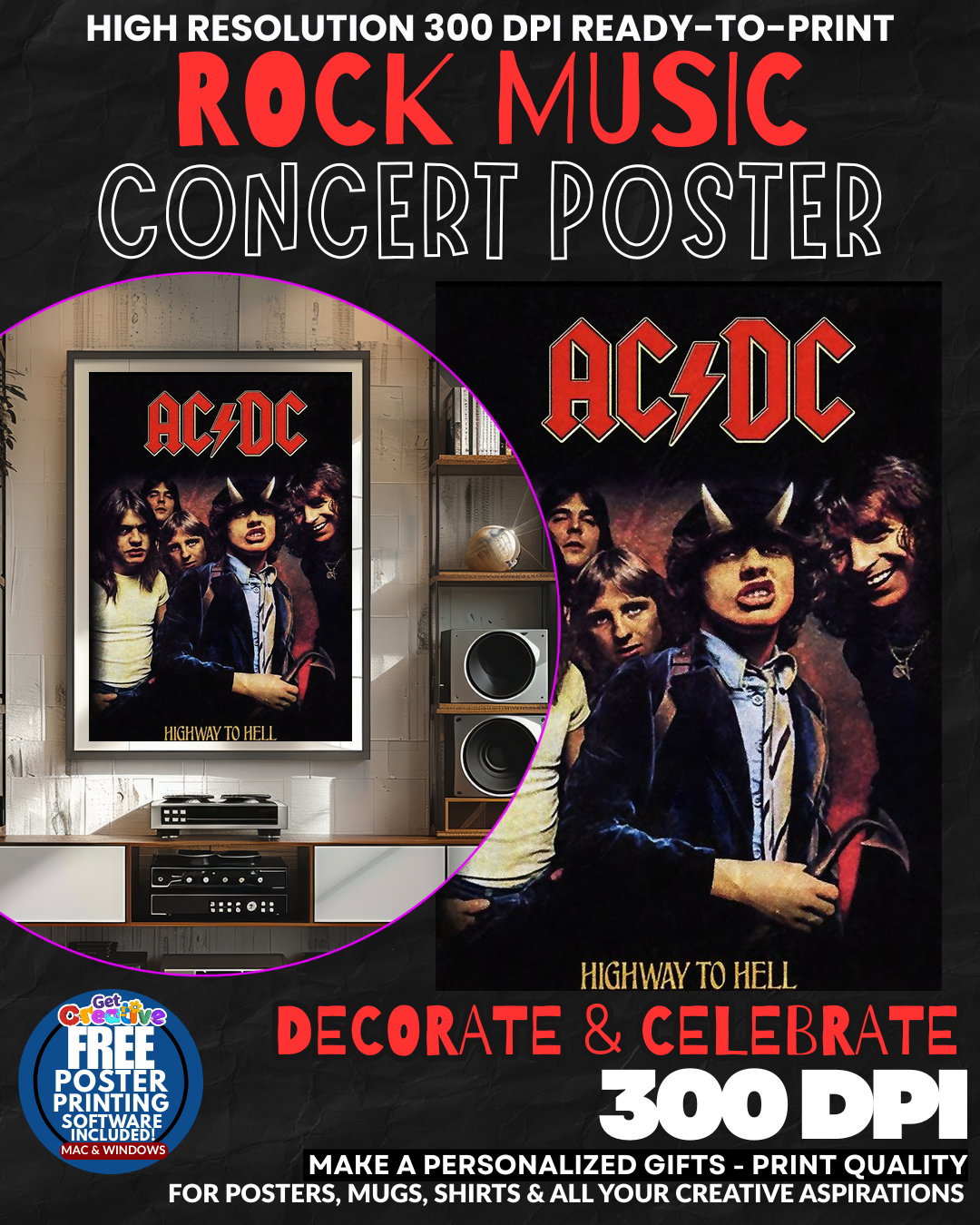 ELECTRIFYING ROCK ROYALTY FOR YOUR WALL! Transform your space into a THUNDEROUS SHRINE to rock and roll LEGENDS with this EXPLOSIVE AC/DC concert poster! Feel the RAW POWER and rebellious spirit of hard rock’s most ICONIC band charging through your room every single day! This isn’t just wall art – it’s a DECLARATION of your sophisticated musical taste and rock credentials that commands INSTANT RESPECT from every visitor! Watch as your walls come ALIVE with the unstoppable energy and timeless cool of true rock WARRIORS! GRAB this legendary piece of music history NOW!