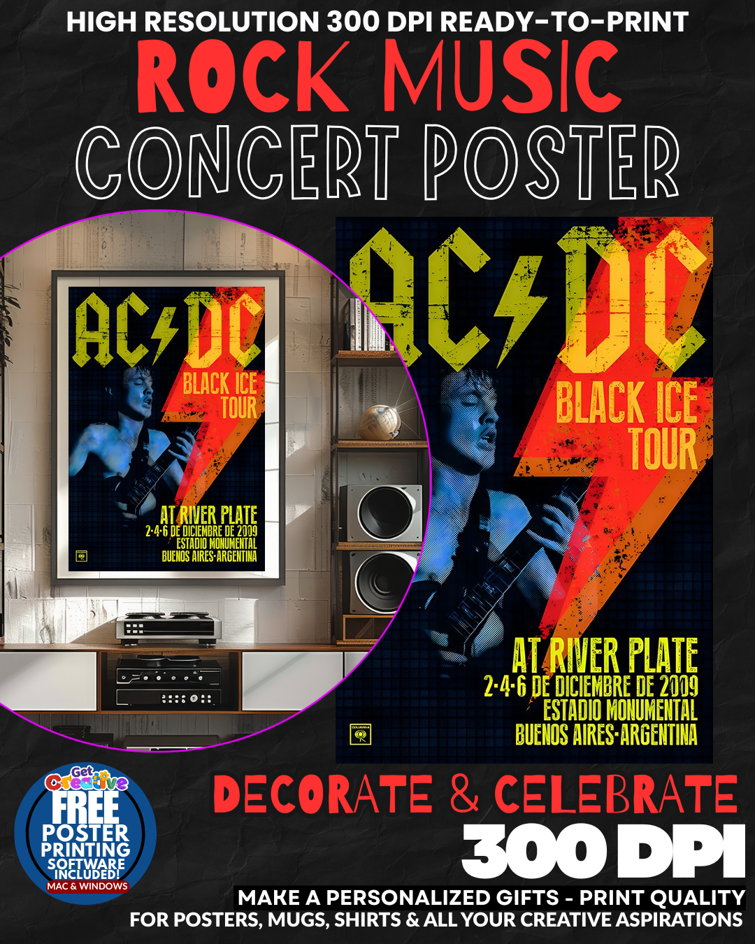 ELECTRIFYING ROCK ROYALTY FOR YOUR WALLS! Transform your space into a THUNDERSTRUCK shrine with this EXPLOSIVE AC/DC concert poster that captures the RAW POWER and legendary energy of rock’s most electrifying band! This isn’t just wall art – it’s a HIGH VOLTAGE statement piece that screams rock and roll rebellion and brings the arena-shaking excitement of live AC/DC straight into your home! Every glance delivers that spine-tingling rush of Marshall stack amplifiers and Angus Young’s lightning-fast guitar riffs that made rock history! Your walls will PULSE with the unstoppable energy that only the masters of hard rock can deliver! GRAB this piece of rock immortality NOW!