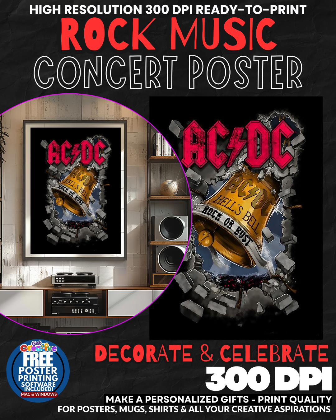 ELECTRIFYING ROCK LEGENDS COMMAND YOUR WALL SPACE! Transform any room into a THUNDEROUS SHRINE to rock and roll royalty with this EXPLOSIVE AC/DC concert poster! Feel the RAW POWER and rebellious energy of Australia’s greatest rock export SURGE through your living space as this ICONIC artwork captures the pure LIGHTNING-BOLT intensity that made AC/DC the ultimate stadium-shaking legends! Whether adorning your den, garage, or music room, this poster delivers that AUTHENTIC rock club atmosphere and pays homage to the band that defined HARD-HITTING guitar mastery and unforgettable anthems! Let the spirit of Highway to Hell and Thunderstruck ELECTRIFY your home with genuine rock and roll swagger! GRAB this legendary tribute and rock your walls TODAY!