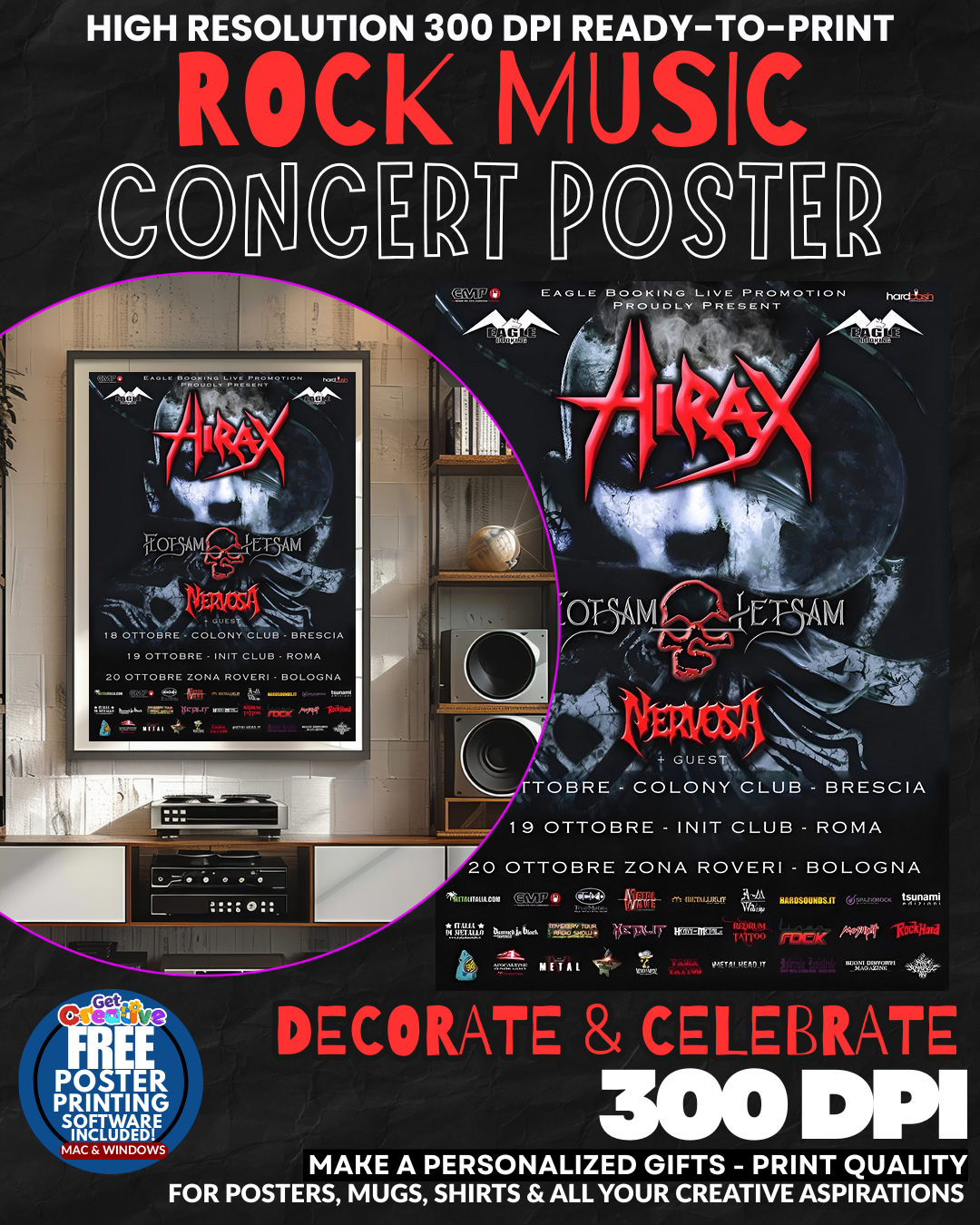 BRING THE ELECTRIC ENERGY OF ROCK HISTORY TO YOUR WALLS! This STUNNING Airax concert poster captures the RAW POWER and LEGENDARY STATUS of rock music at its absolute peak! Transform any boring room into a SHRINE TO ROCK GREATNESS that screams sophistication and musical passion! Your guests will be AMAZED by this authentic piece of concert memorabilia that radiates the pure energy of live rock performance! Perfect for music lovers who demand ONLY THE BEST wall art that celebrates the golden age of rock and roll! GRAB this incredible poster now and let your walls ROCK with authentic musical history!