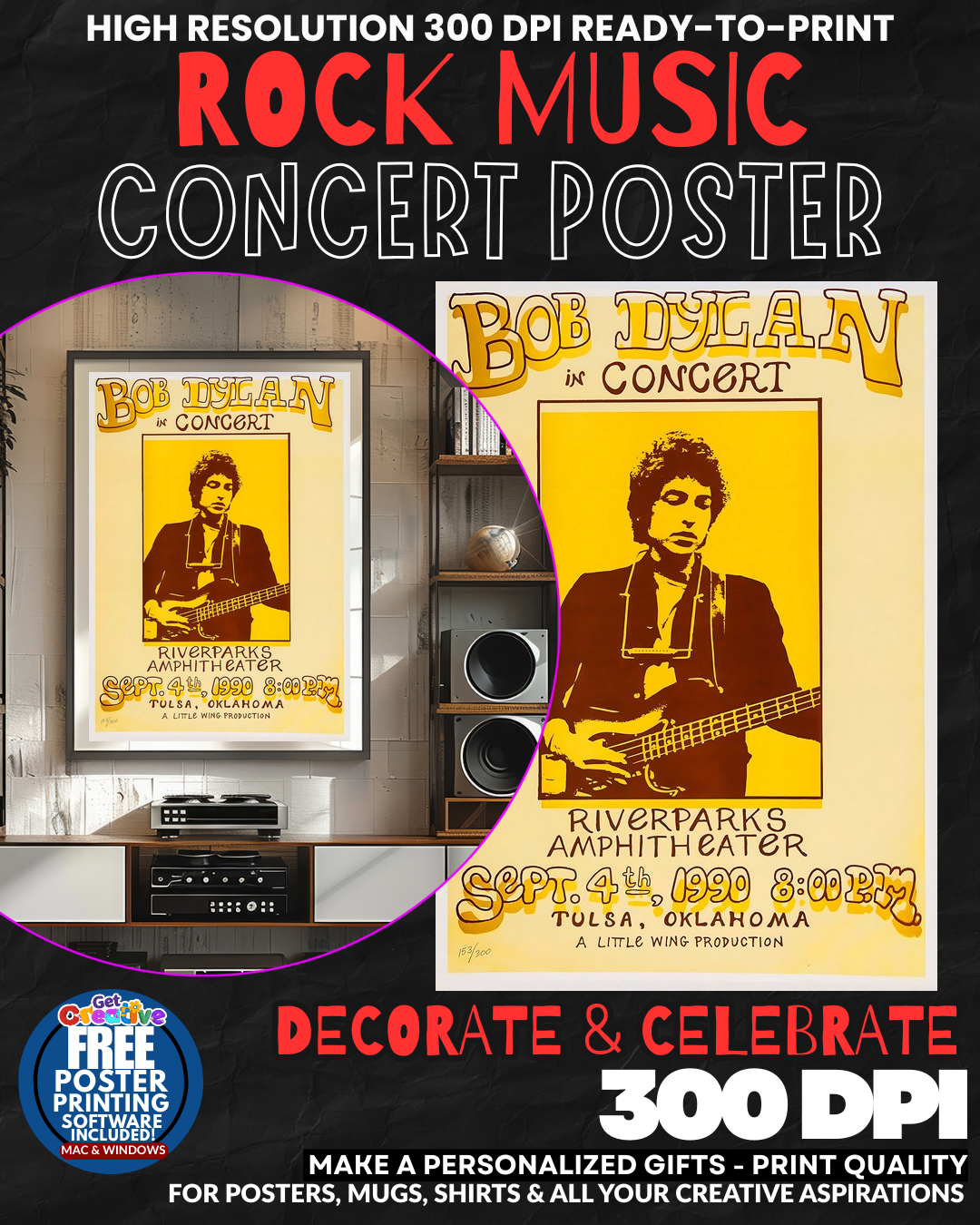 BRING HOME THE VOICE OF A GENERATION! Transform your space into a SHRINE TO MUSICAL GENIUS with this ELECTRIFYING Bob Dylan concert poster that captures the RAW POWER and POETIC BRILLIANCE of rock’s greatest storyteller! Feel the THUNDEROUS ENERGY of Dylan’s legendary performances radiating from your walls as this STUNNING wall art becomes the CROWN JEWEL of your music collection! Every glance will transport you to those HISTORIC moments when folk met rock and CHANGED MUSIC FOREVER! Your guests will be MESMERIZED by this tribute to the Nobel Prize-winning troubadour whose words SHOOK THE WORLD! GRAB this piece of rock history NOW!