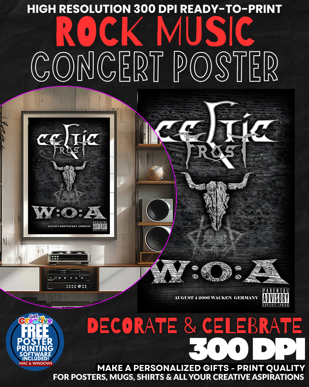 TRANSFORM YOUR SPACE INTO ROCK AND ROLL PARADISE! This STUNNING Celtic Frost concert poster delivers the RAW POWER and LEGENDARY ENERGY of true metal history straight to your wall! Feel the THUNDEROUS BEATS and ELECTRIFYING ATMOSPHERE every time you enter the room as this ICONIC piece commands respect from every guest and visitor! Whether displayed in your den, bedroom, or music room, this AUTHENTIC rock memorabilia instantly elevates your space with PURE MUSICAL REBELLION and showcases your sophisticated taste in legendary metal acts! GRAB this piece of rock history before it vanishes forever!