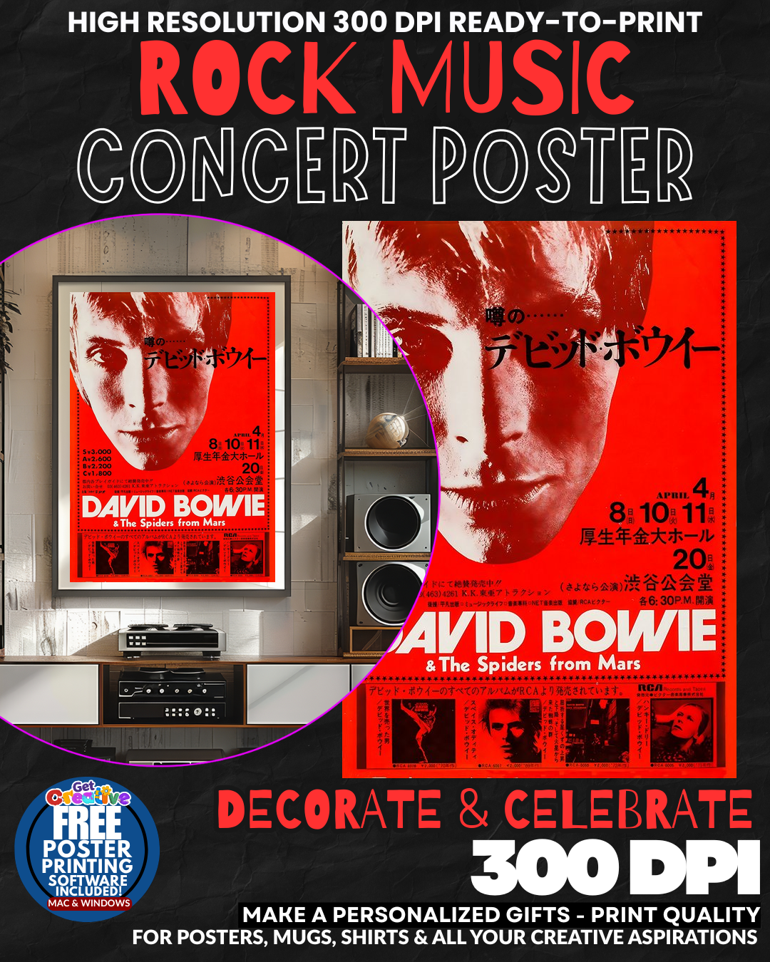 TRANSFORM YOUR SPACE INTO A ROCK AND ROLL SHRINE! This STUNNING David Bowie concert poster brings the ELECTRIFYING energy and SOPHISTICATED glamour of the Thin White Duke himself directly into your home! Feel the PULSATING rhythm and witness the LEGENDARY artistry that made Bowie a global icon as this MAGNIFICENT wall art commands attention and sparks conversation in any room! Your guests will be AMAZED by this tribute to rock royalty that captures the essence of musical genius and timeless style! GRAB this incredible piece of music history today!