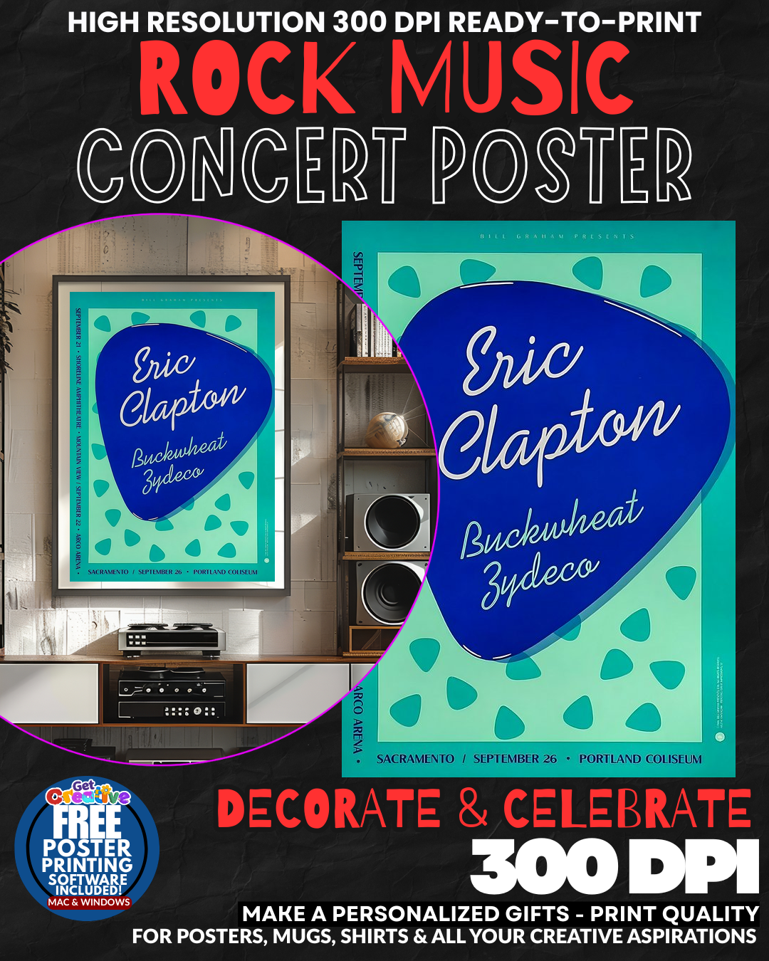 BRING HOME THE BLUES LEGEND’S ELECTRIC MAGIC! Transform your space into a ROCK AND ROLL SHRINE with this stunning Eric Clapton concert poster that captures the raw GUITAR GENIUS and soulful power of Slowhand himself! Feel the ELECTRIC ENERGY of legendary performances flowing through your walls as this masterpiece showcases the iconic artistry that made Clapton a living legend! Your guests will be MESMERIZED by the sophisticated rock elegance that only comes from displaying tribute to one of music’s greatest virtuosos! This isn’t just wall art – it’s your personal connection to BLUES ROYALTY and decades of unforgettable musical moments! GRAB this piece of rock history NOW!