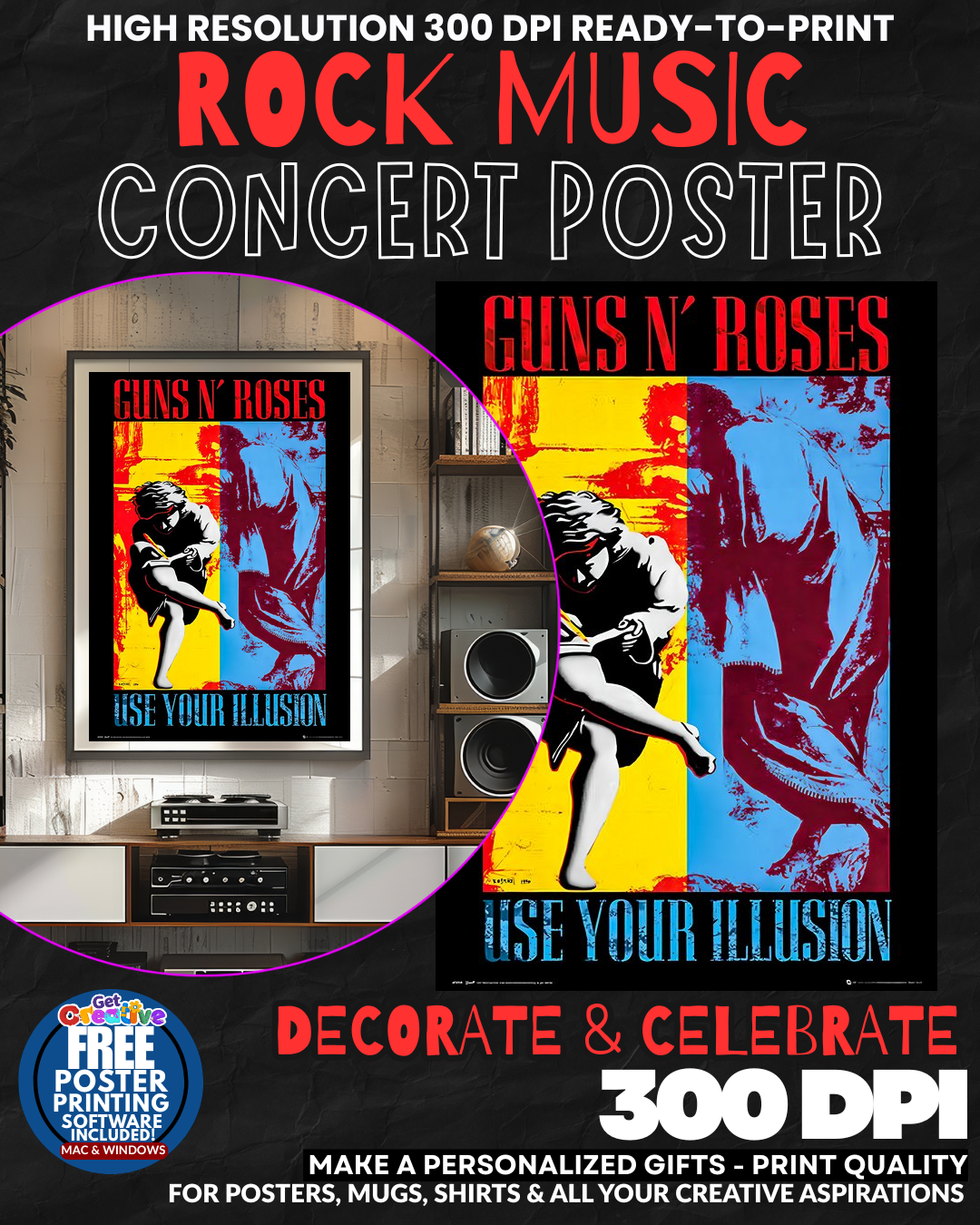 ROCK AND ROLL ROYALTY FOR YOUR WALLS! Transform any space into a LEGENDARY ROCK SHRINE with these EXPLOSIVE Guns N Roses concert posters! Feel the RAW POWER and REBELLIOUS ENERGY of rock’s most DANGEROUS band coursing through your home as these ICONIC images command INSTANT RESPECT from every guest! Whether you’re creating the ultimate man cave or adding some SERIOUS ROCK CREDIBILITY to your space, these posters deliver the AUTHENTIC SWAGGER and UNTAMED SPIRIT that made GNR the kings of the Sunset Strip! Each poster captures the ELECTRIC ATMOSPHERE and PURE ADRENALINE of their most LEGENDARY performances! GRAB this collection of rock history and let Axl, Slash and the boys RULE YOUR WALLS!