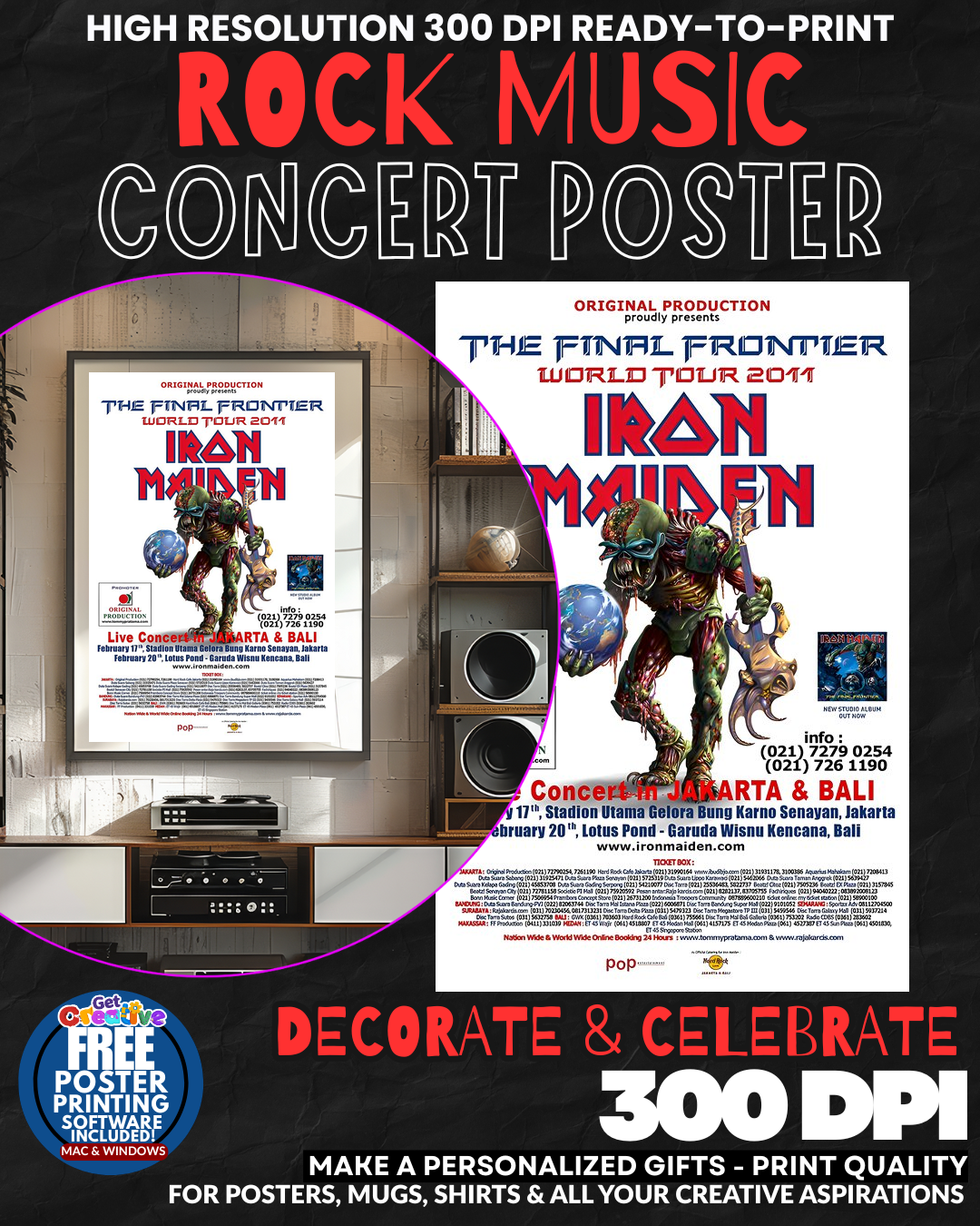 UNLEASH THE POWER OF HEAVY METAL HISTORY IN YOUR DOMAIN! Transform your ordinary wall into a THUNDEROUS SHRINE to the gods of metal with this EXPLOSIVE Iron Maiden concert poster that radiates pure ROCK AND ROLL MAGNIFICENCE! Your guests will be STUNNED by the sheer metallic energy pulsing from this legendary artwork that captures the raw power and mystical brilliance of heavy metal royalty! This isn’t just decoration it’s a DECLARATION of your superior musical taste and rock credentials that commands INSTANT RESPECT from every metal warrior who enters your space! GRAB this piece of rock history and let the metal gods reign supreme in your home!