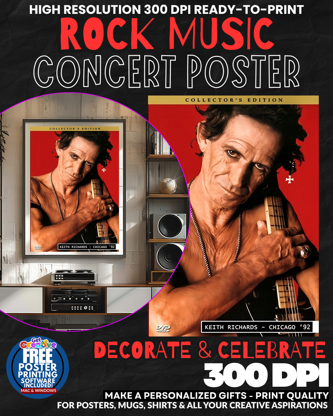 BRING HOME THE LEGENDARY RIFF MASTER’S ELECTRIC SOUL! Transform your space into a ROCK AND ROLL SHRINE with this stunning Keith Richards concert poster that captures the RAW POWER and timeless rebellion of the Rolling Stones’ immortal guitarist! Every glance delivers that classic rock sophistication and backstage glamour that only THE HUMAN RIFF himself can command! Your walls will PULSE with the same electric energy that has defined rock music for decades, turning any room into your personal VIP concert experience! GRAB this iconic piece of rock history today!