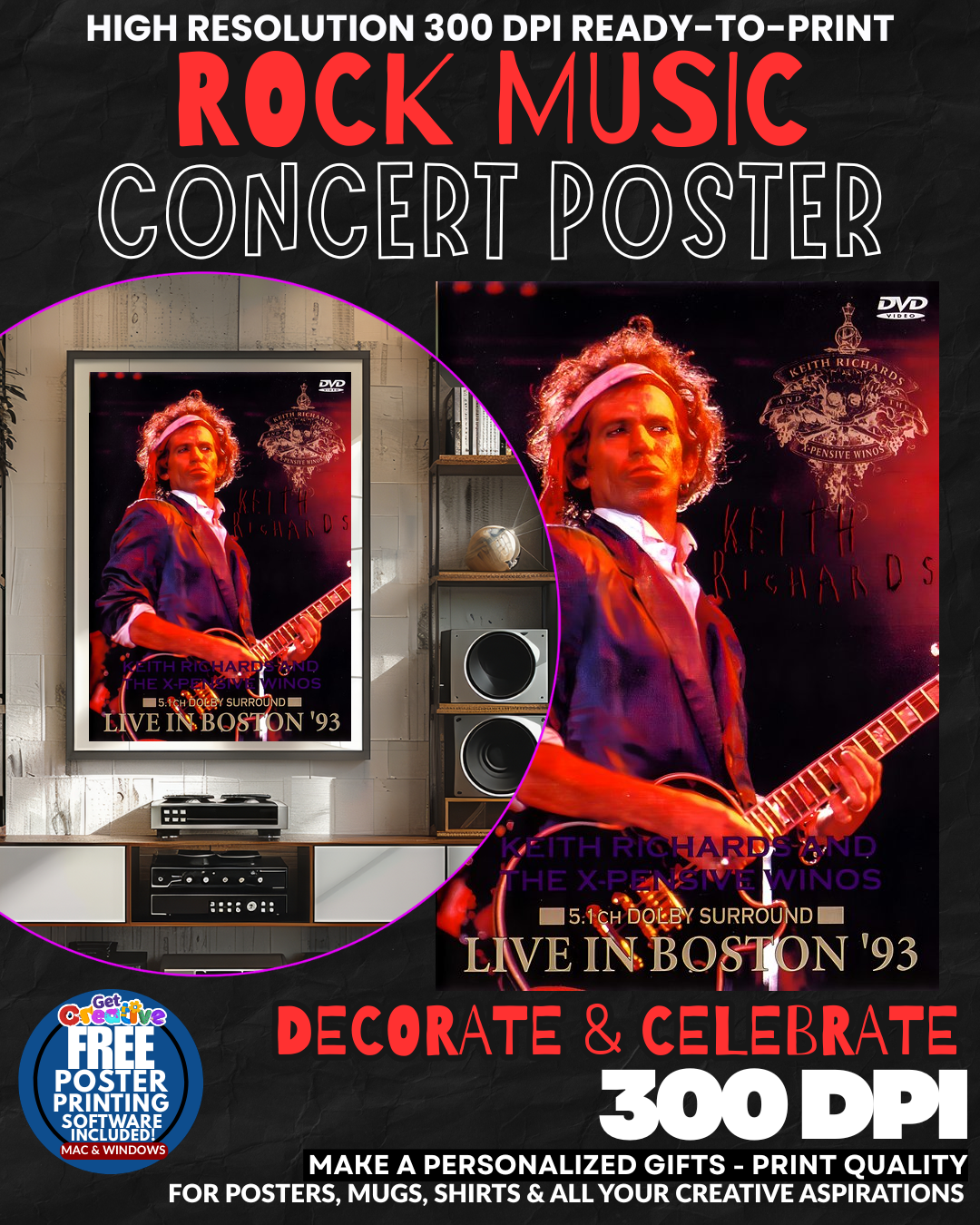 Be the first to review “Keith Richards 2 Music Rock Concert Poster Wall Art”