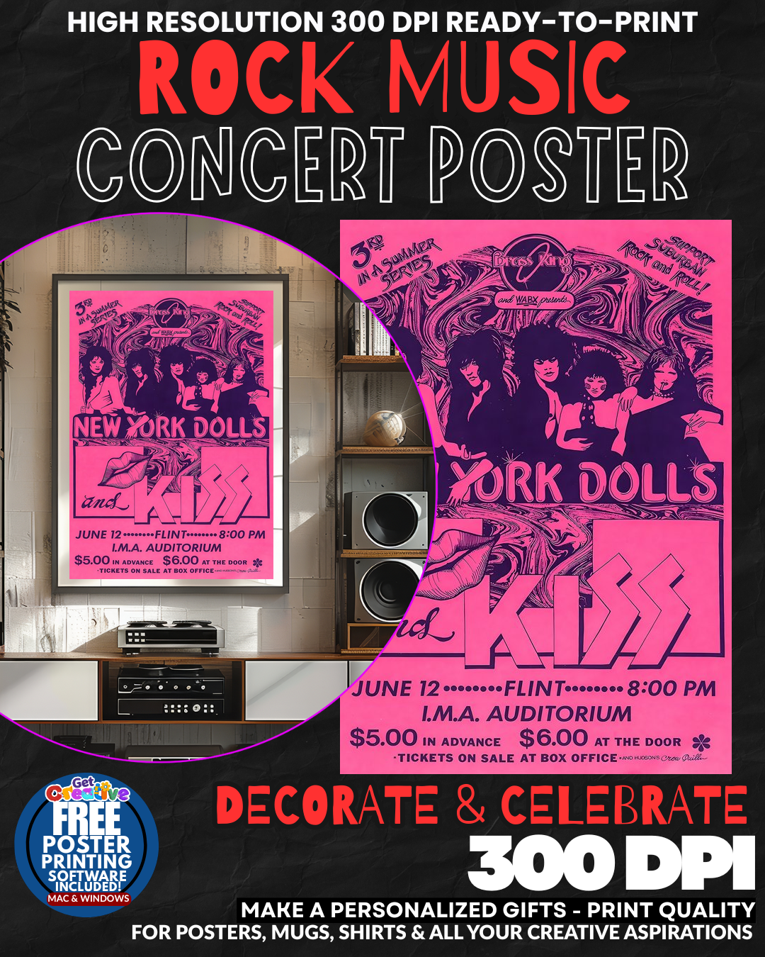 ROCK AND ROLL ROYALTY COMMANDS YOUR WALL! Transform your space into a THUNDEROUS SHRINE to the legendary KISS with this ELECTRIFYING concert poster that captures the raw POWER and theatrical MAJESTY of rock’s most iconic warriors! This isn’t just wall art – it’s a PORTAL to the golden age of arena rock that will make every guest feel the PULSING energy of sold-out stadiums and the intoxicating rush of pure rock and roll REBELLION! Your room becomes an instant tribute to the makeup-masked GODS who defined an entire generation’s soundtrack to freedom and unleashed the primal scream of youth across the world! GRAB this legendary piece of rock history NOW!