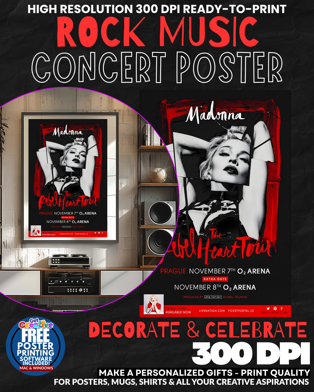 RELIVE THE QUEEN OF POP’S LEGENDARY MAGIC! Transform your space into a SHRINE TO PURE MUSICAL GENIUS with this stunning Madonna concert poster that captures the RAW ENERGY and ICONIC GLAMOUR of pop royalty! Feel the electric pulse of her legendary performances EVERY SINGLE DAY as this masterpiece radiates the sophisticated rebellion and boundary-breaking artistry that made Madonna the undisputed QUEEN OF REINVENTION! Your walls will PULSE with the same magnetic charisma that commanded sold-out arenas and redefined an entire generation of music lovers! GRAB this piece of pop culture GOLD today!