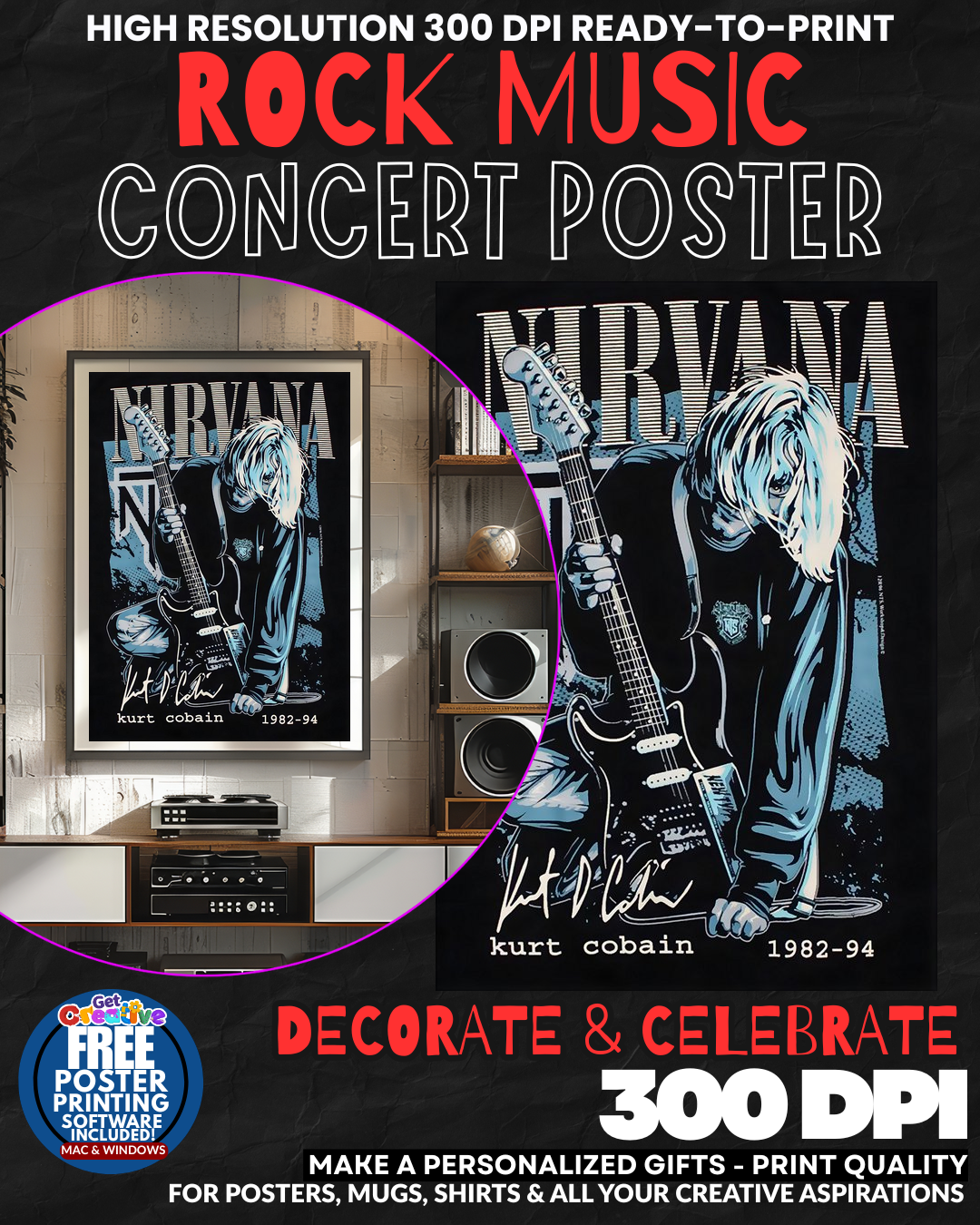 BRING THE GRUNGE REVOLUTION HOME! Transform your space into a SHRINE TO ROCK HISTORY with this electrifying Nirvana concert poster that captures the RAW POWER and rebellious spirit of the band that defined a generation! This isn’t just wall art – it’s a PORTAL TO THE 90s that floods your room with the same explosive energy that made Kurt Cobain and Nirvana LEGENDS OF ALTERNATIVE ROCK! Every glance transports you back to the mosh pits and the thunderous guitar riffs that SHOOK THE MUSIC WORLD FOREVER! Your walls will PULSE with the same defiant attitude that made grunge the voice of youth rebellion! GET yours now and let the spirit of Seattle’s finest ELECTRIFY your space!