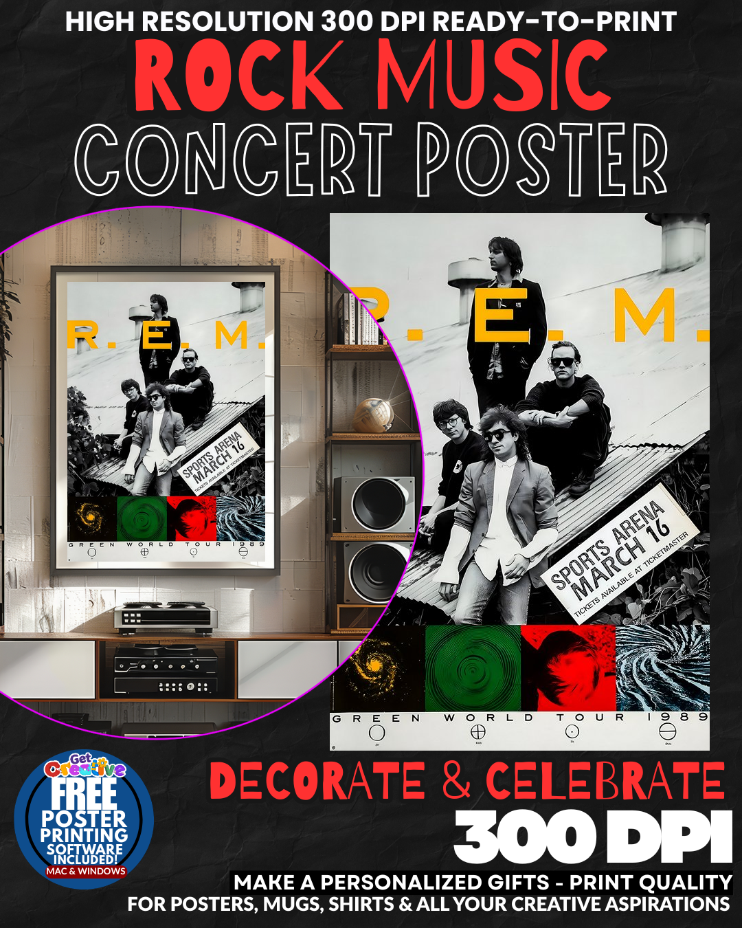 BRING THE ELECTRIC ENERGY OF ROCK AND ROLL INTO YOUR SPACE! Transform any boring wall into a THUNDEROUS SHRINE to musical greatness with this stunning REM concert poster that captures the RAW POWER and artistic brilliance of one of rock’s most legendary bands! This isn’t just wall decoration – it’s a PORTAL to the golden age of alternative rock that will instantly elevate your room’s sophistication and showcase your impeccable taste in music history! Every glance will transport you back to the era when REM ruled the airwaves and defined a generation’s sound with their groundbreaking artistry! Your guests will be absolutely mesmerized by this authentic piece of rock memorabilia that screams serious music collector! GRAB this incredible tribute to musical legends today!