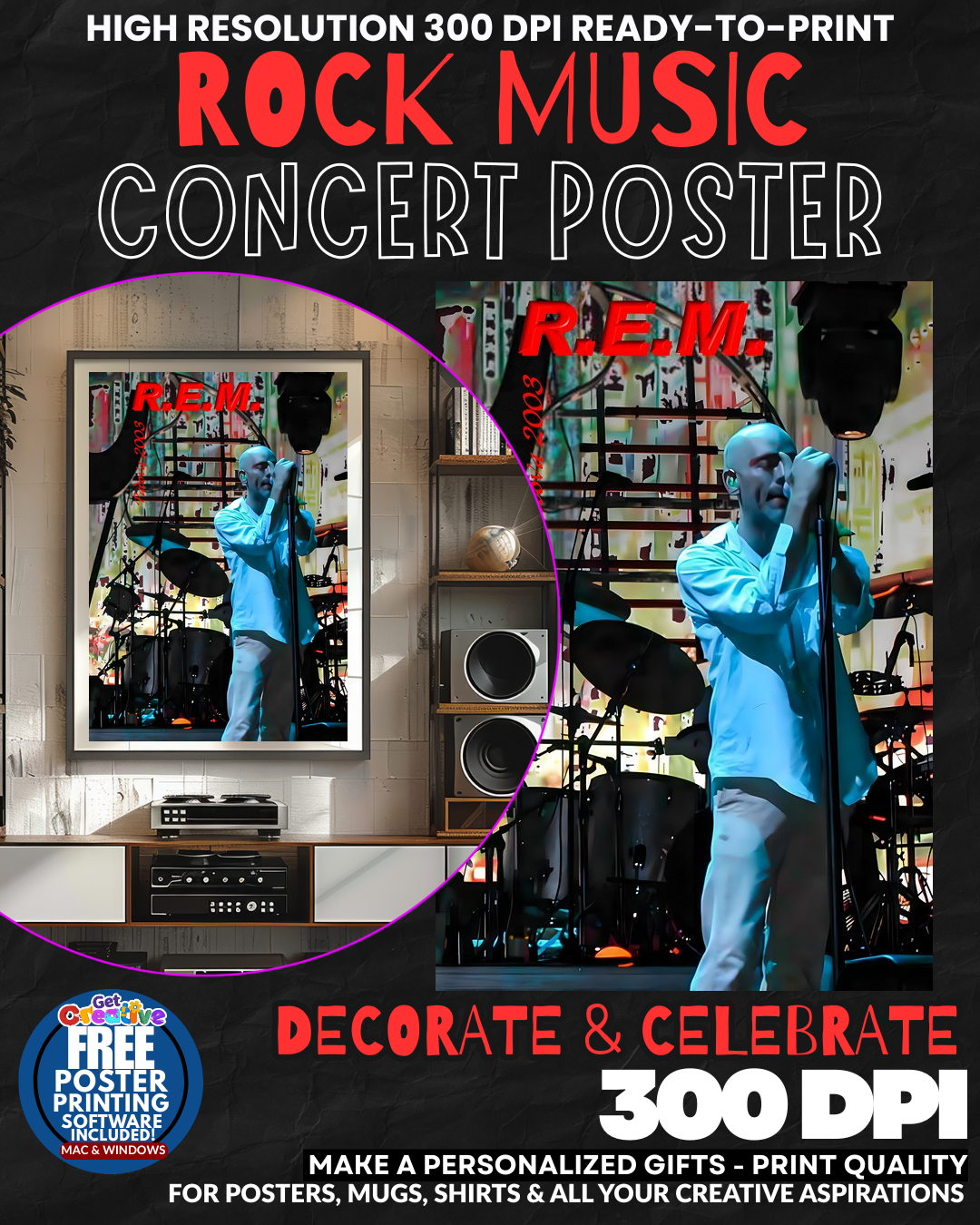 ROCK ROYALTY GRACES YOUR WALLS! Transform your space into a SHRINE TO MUSICAL GREATNESS with this electrifying REM concert poster that captures the RAW ENERGY and ALTERNATIVE ROCK BRILLIANCE of one of music’s most influential bands! This isn’t just wall art – it’s a PORTAL TO ROCK HISTORY that instantly elevates your room with the sophisticated edge of college rock pioneers and the timeless appeal of Athens Georgia’s finest musical exports! Every glance delivers that rush of PURE ROCK ADRENALINE and connects you to the legendary soundscapes that defined a generation! Your walls will PULSE WITH MUSICAL POWER as this stunning tribute commands respect from every music lover who enters your domain! GRAB this piece of rock and roll history NOW!