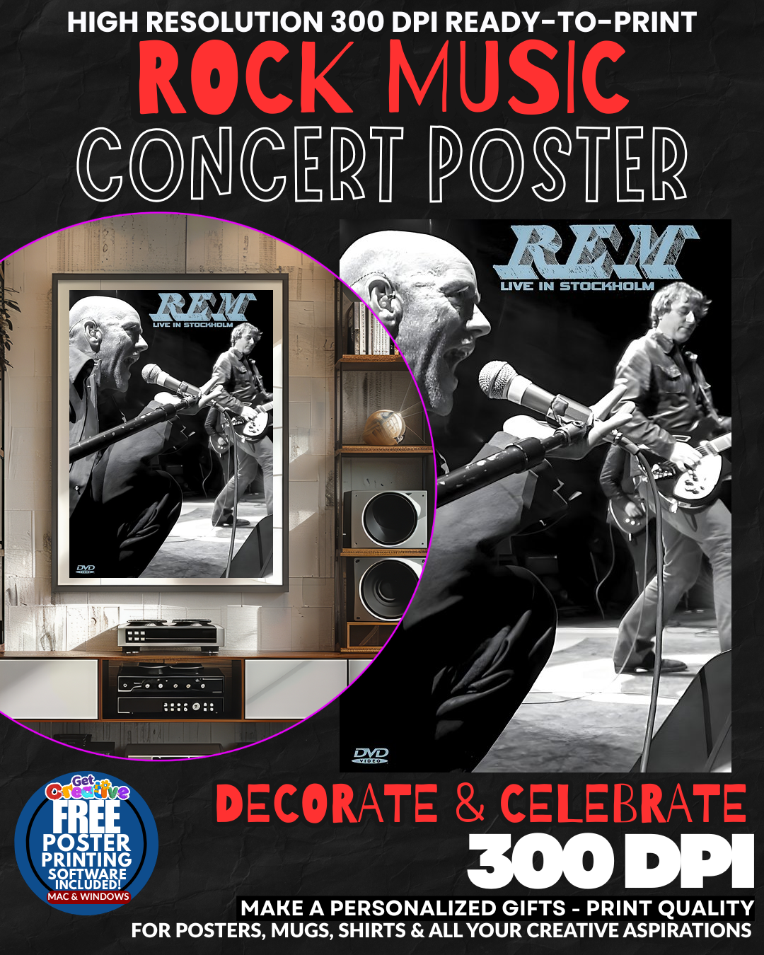 BRING THE ELECTRIC ENERGY OF ROCK LEGENDS TO YOUR SPACE! This stunning Rem 5 concert poster wall art transforms any boring wall into a SHRINE OF ROCK GREATNESS that screams sophistication and musical passion! Feel the THUNDEROUS POWER of live performance energy radiating from your walls as guests marvel at your impeccable taste in legendary rock memorabilia! This isn’t just wall decoration – it’s a STATEMENT PIECE that announces your devotion to the gods of rock and roll! GRAB this electrifying tribute to musical excellence before it vanishes into rock history!