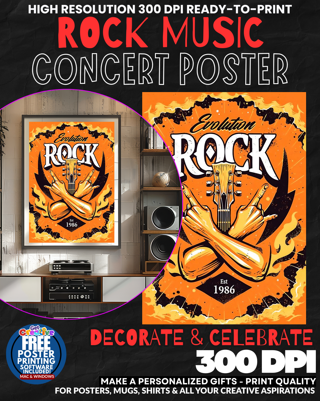 TRANSFORM YOUR SPACE INTO ROCK AND ROLL HEAVEN! This ELECTRIFYING Rock Concert Poster delivers the RAW POWER and REBELLIOUS SPIRIT of rock and roll straight to your walls! Feel the THUNDEROUS ENERGY of legendary concerts and the UNSTOPPABLE FORCE of rock music every time you enter the room! This stunning wall art captures the WILD FREEDOM and ELECTRIC ATMOSPHERE that made rock and roll the soundtrack of revolution! Your guests will be AMAZED by the authentic concert vibe that radiates pure MUSICAL PASSION and transforms any ordinary space into a ROCK SHRINE worthy of the greatest legends! GRAB this piece of rock history NOW!