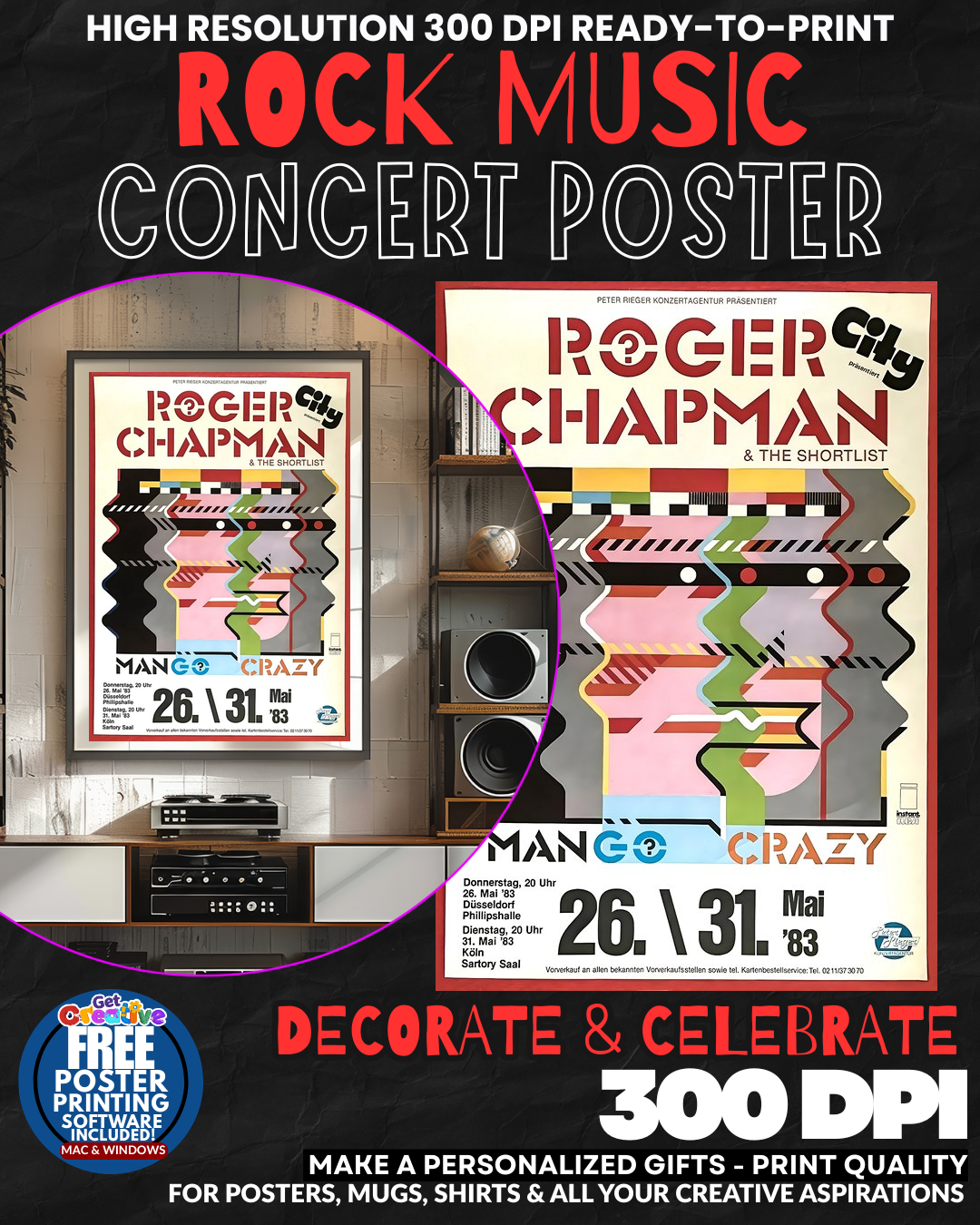 BRING THE ELECTRIC ENERGY OF ROCK ROYALTY INTO YOUR WORLD! This STUNNING Roger Chapman concert poster delivers the RAW POWER and LEGENDARY MAGNETISM of one of rock’s most DYNAMIC performers directly to your wall! Transform any ordinary space into a SHRINE TO ROCK EXCELLENCE that radiates the sophisticated rebellion and artistic brilliance that only true music connoisseurs understand! Your guests will be MESMERIZED by this authentic slice of rock history that screams quality and impeccable taste! GRAB this incredible piece of musical heritage now!