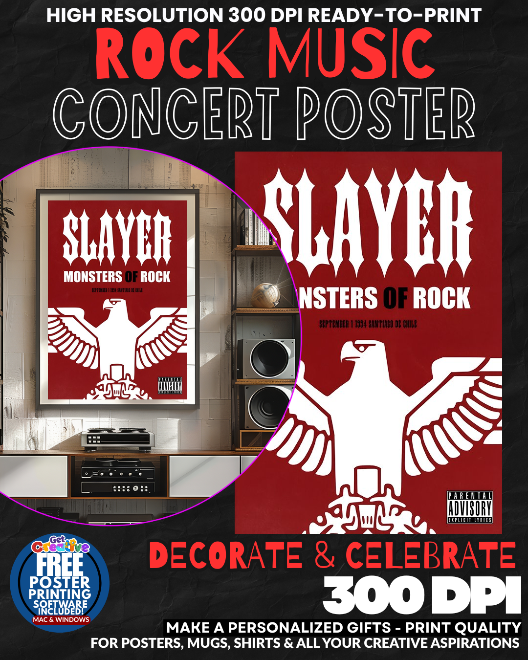 UNLEASH THE SAVAGE POWER OF METAL’S MOST BRUTAL LEGENDS! Transform your space into a SHRINE OF SONIC DEVASTATION with this electrifying Slayer concert poster that captures the RAW INTENSITY and CRUSHING POWER of thrash metal’s undisputed kings! Every glance delivers a THUNDEROUS RUSH of adrenaline as this stunning wall art commands respect and strikes fear into the hearts of all who dare enter your domain! Feel the PRIMAL ENERGY of legendary riffs and bone-crushing beats radiating from your walls, creating an atmosphere of PURE METALLIC SUPREMACY that separates the true warriors from the weak! GRAB this monument to metal mastery and let your walls SCREAM with the fury of the gods!