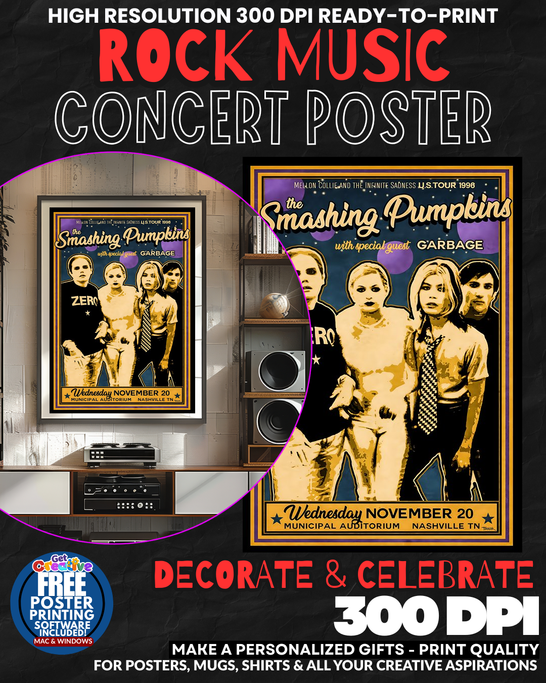 UNLEASH THE SONIC FURY OF GRUNGE ROYALTY! Transform your space into a TEMPLE OF ALTERNATIVE ROCK with this electrifying Smashing Pumpkins concert poster that captures the RAW POWER and artistic brilliance of one of music’s most influential bands! This stunning wall art brings the THUNDEROUS ENERGY of their legendary performances directly into your home, creating an instant conversation piece that screams sophistication and musical knowledge to every guest who enters! Whether you’re a longtime devotee or discovering their genius for the first time, this poster delivers the PERFECT blend of nostalgia and cutting-edge style that only true rock royalty can provide! GRAB this piece of music history and let Billy Corgan’s vision dominate your walls!
