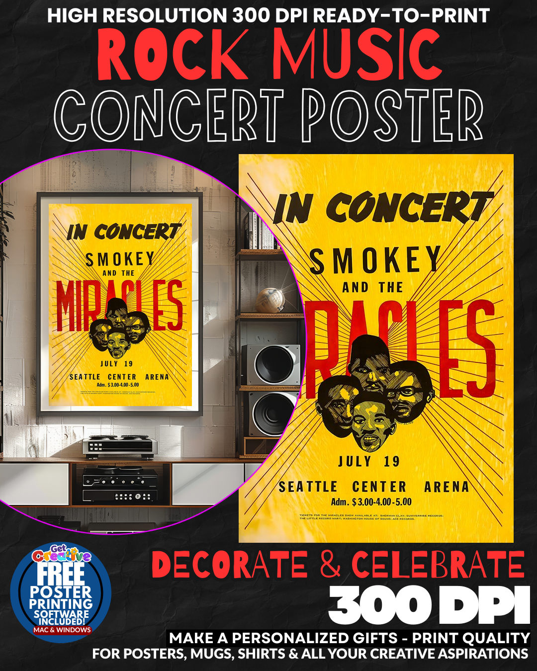 RELIVE THE GOLDEN AGE OF MOTOWN MAGIC! Transport your space back to the electrifying era when Smokey Robinson and The Miracles ruled the airwaves with their LEGENDARY SOUL SOUND! This stunning concert poster captures the raw energy and sophisticated glamour of Detroit’s finest, bringing that classic Motown sophistication directly to YOUR WALLS! Feel the rhythm and blues legacy that defined a generation as this authentic tribute transforms any room into a shrine to musical greatness. The timeless appeal of TRUE SOUL MUSIC meets vintage concert poster artistry in one incredible display piece that screams pure musical sophistication! OWN this slice of Motown history today!