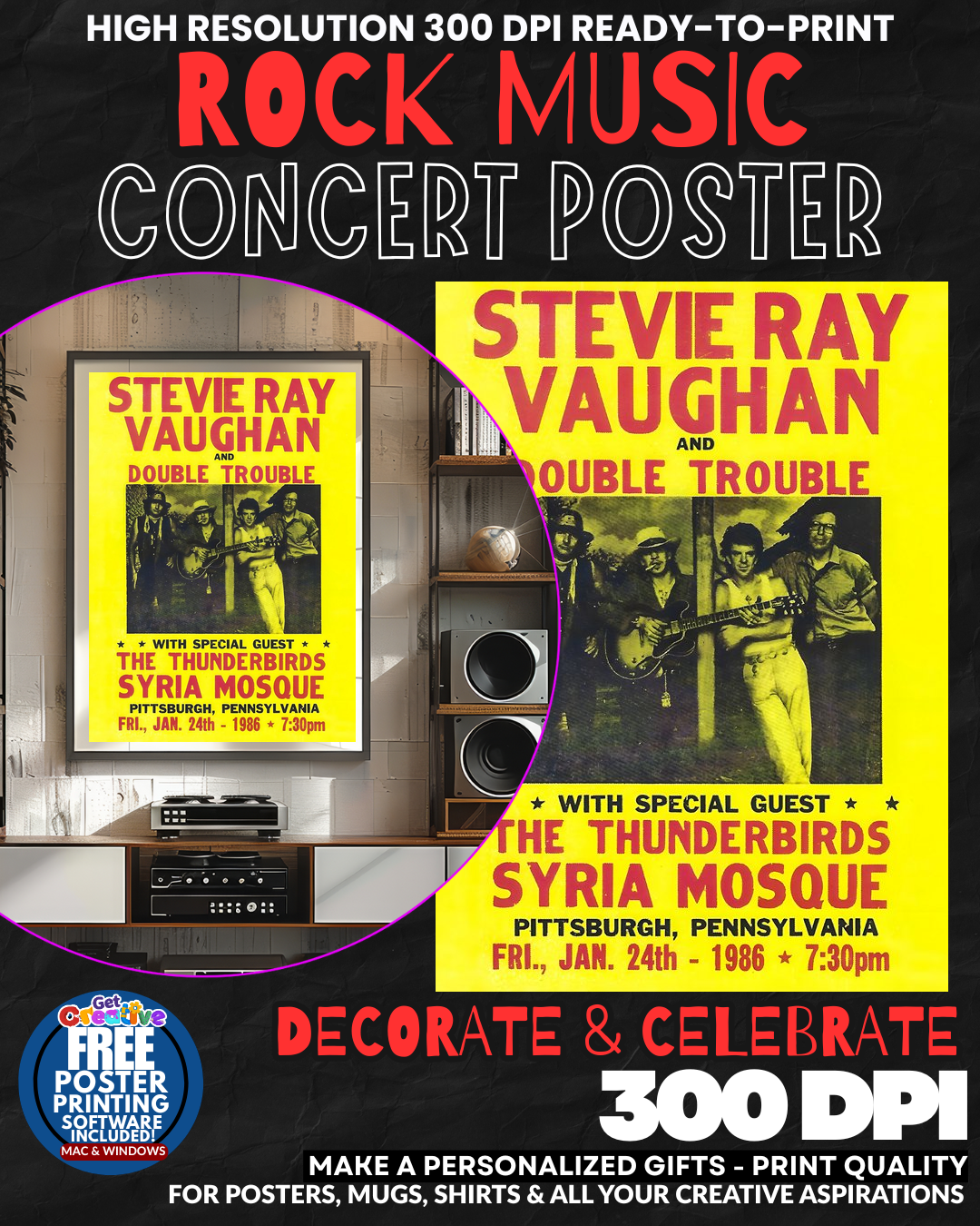 BRING THE BLUES LEGEND HOME! Transform your space into a SHRINE TO PURE GUITAR GENIUS with this electrifying Stevie Ray Vaughan concert poster! Feel the RAW POWER and SOULFUL FIRE of Texas blues royalty blazing from your wall every single day! This isn’t just wall art – it’s a CELEBRATION OF MUSICAL IMMORTALITY that commands respect and admiration from every music lover who enters your domain! Let SRV’s legendary spirit and blistering guitar mastery inspire your daily life with AUTHENTIC ROCK AND ROLL ENERGY! GRAB this tribute to blues perfection NOW!