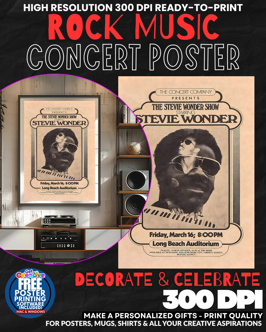BRING HOME THE LEGENDARY SOUL POWER OF STEVIE WONDER! Transform your space into a SHRINE TO MUSICAL GENIUS with this electrifying concert poster featuring the one and only STEVIE WONDER! Feel the pulsating rhythm and soulful energy radiating from your walls as this STUNNING WALL ART captures the raw power and brilliant artistry of one of music’s greatest legends! Your guests will be MESMERIZED by the incredible presence this poster brings to any room, instantly elevating your space with the sophisticated glamour of rock and soul royalty! Every glance will transport you back to those unforgettable concert moments when pure musical magic filled the air! GRAB this incredible piece of music history today!