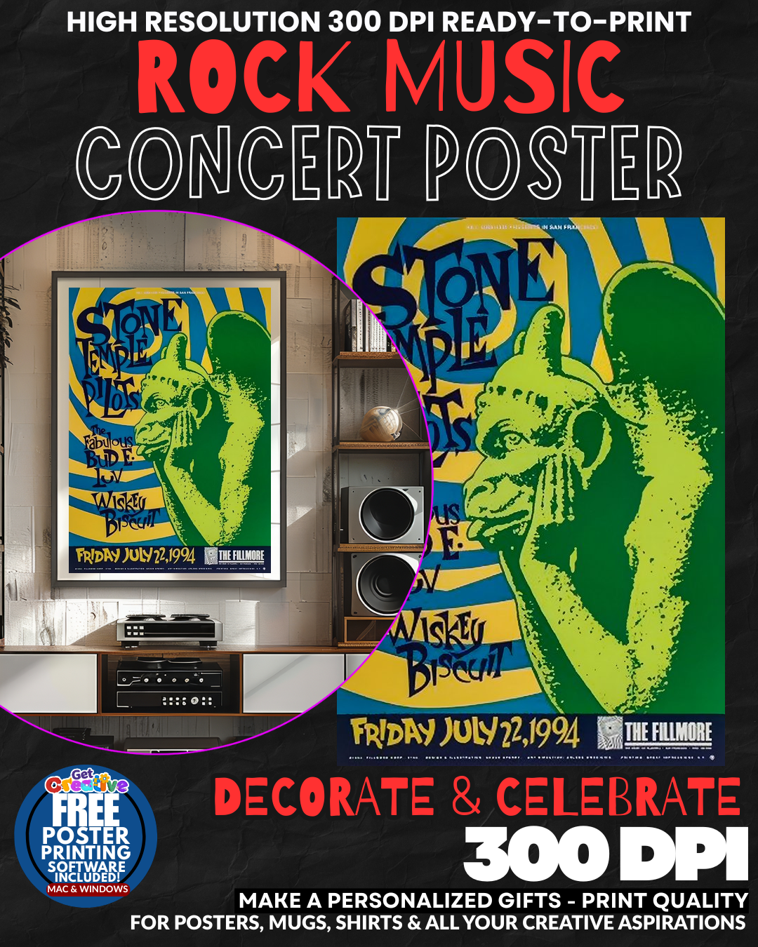 ROCK LEGENDS COME ALIVE ON YOUR WALL! Transform any space into a TEMPLE OF GRUNGE GREATNESS with this electrifying Stone Temple Pilots concert poster that captures the RAW POWER and rebellious spirit of 90s alternative rock! Feel the thunderous energy of Scott Weiland’s haunting vocals and crushing guitar riffs EXPLODE from your wall as this stunning tribute brings the legendary band’s concert atmosphere directly into your home or office! Whether you’re a die-hard STP fan or serious music collector, this poster delivers that authentic rock club vibe that makes every day feel like front row at the concert! GET yours now and let the grunge revolution rock your world!