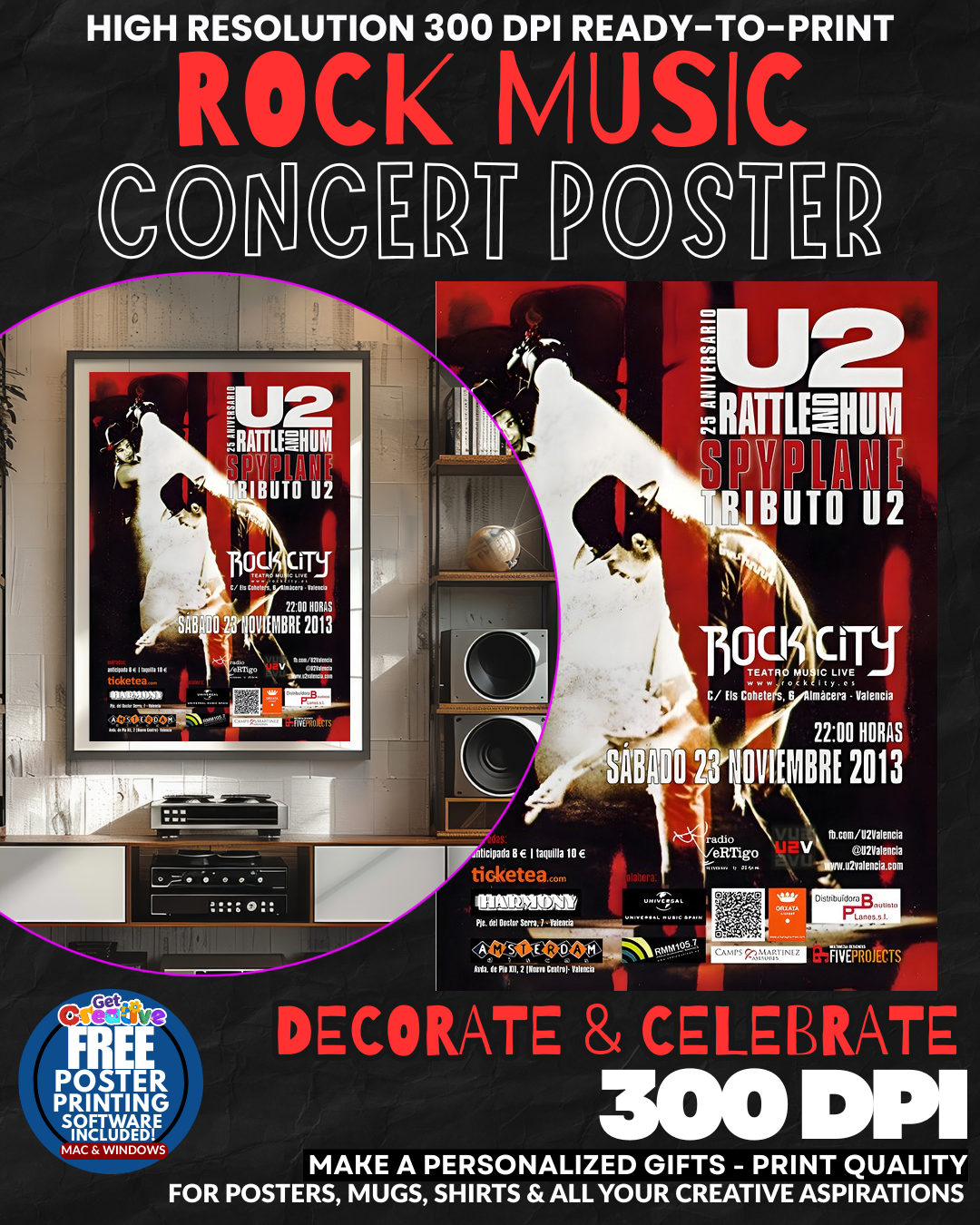 U2 3 Music Rock Concert Poster Wall Art. A professional-grade poster for music enthusiasts, available at $2.95.
