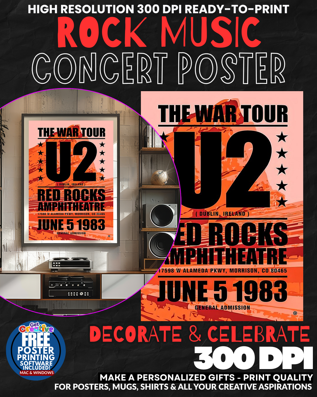 U2 4 Music Rock Concert Poster Wall Art. This U2 poster is available for purchase at $2.95.